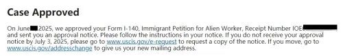 2025年6月3日:不到两周的时间,便收到USCIS的批准通知,全程无补件。