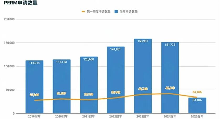 2019财年-2025财年Q1 PERM申请数量