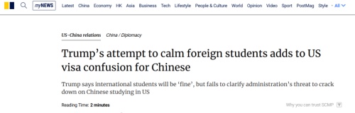 但是,在当前的大环境下,川普的这番“喊话”并不能缓解留子们心中的不安,言辞上的缓和也不意味着政策的松动。要知道,美国务院仍在坚持推进“签证重新审查机制”。