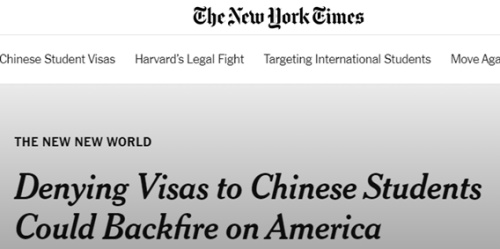 《纽约时报》报道称:拒绝中国学生签证,可能会“反噬”美国。