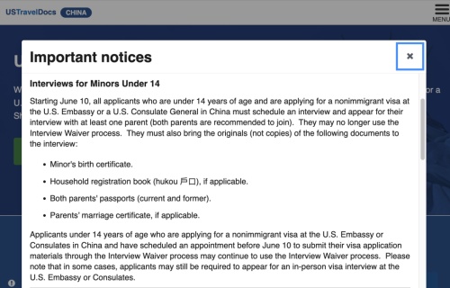 6月10日起,取消14周岁以下美签申请人免面谈申请,必须参加面试。
