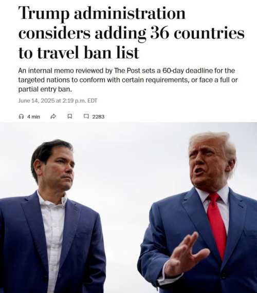 电报写道:“国务院已确定了36个关注国家,如果这些国家在60天内无法达到既定标准和要求,可能会被建议实施全面或部分入境限制。”