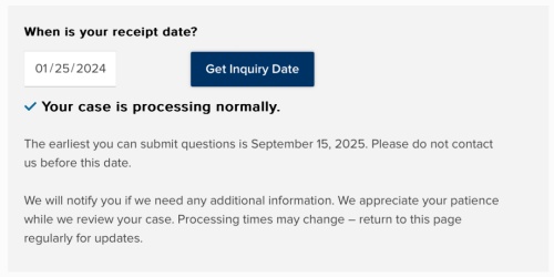 移民局公布的审案进度,指的是80%的案子能够获批所需的时间长度。若你的申请处理时间慢于93%的案子,才有资格向移民局查询案件进展。