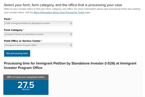 新政下直投项目的I-526申请,80%的案子是在27.5月里审批完毕的。