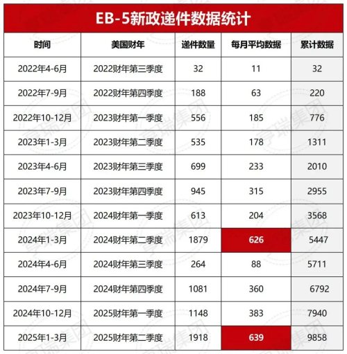 需要注意的是:根据移民局之前公布的数据,已经有众多申请人看到了EB-5新政的优势,为了抢占“双递交”窗口期,25财年第二季度,EB-5新政的申请量飙涨,隐形排期的危机正在加剧!