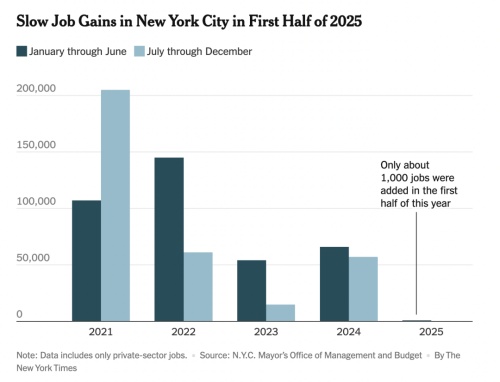 根据《纽约时报》近日的报道,纽约市在2025年上半年仅新增956个企业岗位,这一数据与去年同期新增的6.6万个岗位相比,跌幅惊人,成为自2003年以来最为缓慢的一次。