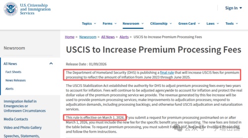 2026年3月1日起USCIS加急费最新费用