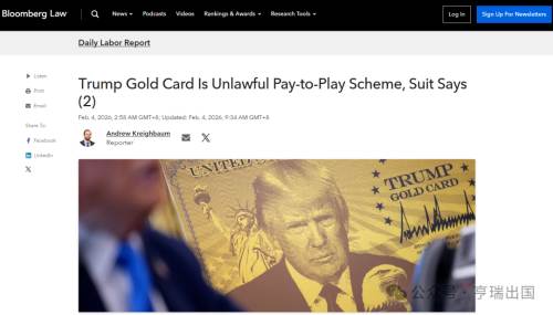 据彭博法律报道,本周二(2026年2月3日),美国大学教授协会(AAUP)正式向哥伦比亚特区地方法院提起诉讼,美国大学教授协会认为,特朗普政府推出的“金卡”项目严重违反了《行政程序法》和《移民和国籍法》,要求法院宣布该计划违法并立即停止其实施。