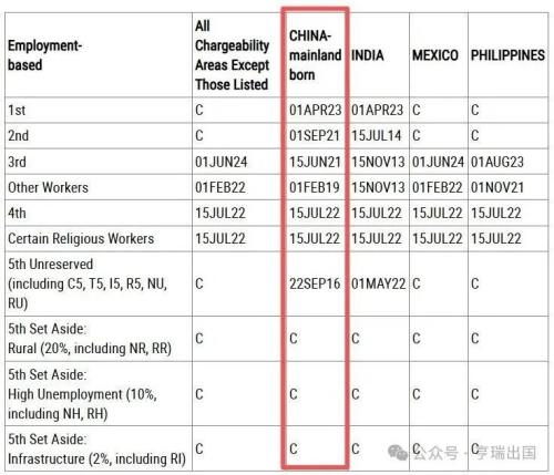 EB-5预留签证类别:无排期。