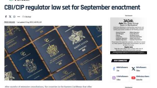 东加勒比国家组织(OECS)最新消息:安提瓜和巴布达、多米尼克、格林纳达、圣基茨和尼维斯以及圣卢西亚五个国家将在2025年9月立法成立“东加勒比公民投资监管局(ECCIRA)”。该地区的投资入籍计划将正式进入区域统一监管阶段。