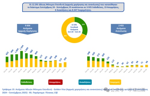 近日,希腊移民与庇护部发布了截至2025年9月的移民数据。2024年9月-2025年9月,希腊黄金居留许可申请量高达12,291份,中国申请人以47.9%的占比持续领跑!