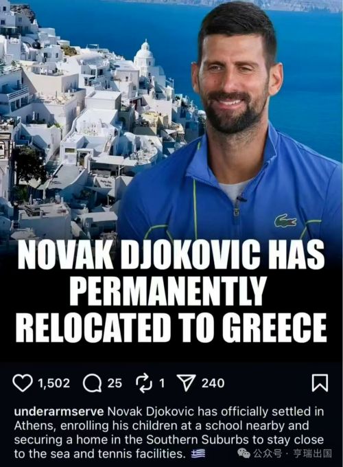 这一决定并非偶然。从媒体报道和公开信息看,德约移居希腊背后有多重因素,而这些也是许多高净值家庭选择希腊的重要理由。