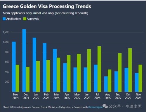 根据希腊移民局最新公布的2025年11月数据,截至2025年11月,希腊待处理的黄金签证申请数量减少至42,390件,这是自3月份改进措施开始以来最高的月处理速度。