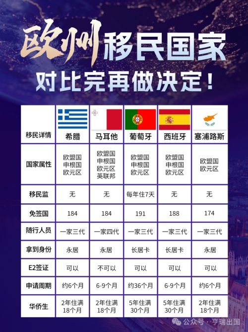 下面整理了欧洲五大移民国家核心指标对比,方便大家按需匹配: